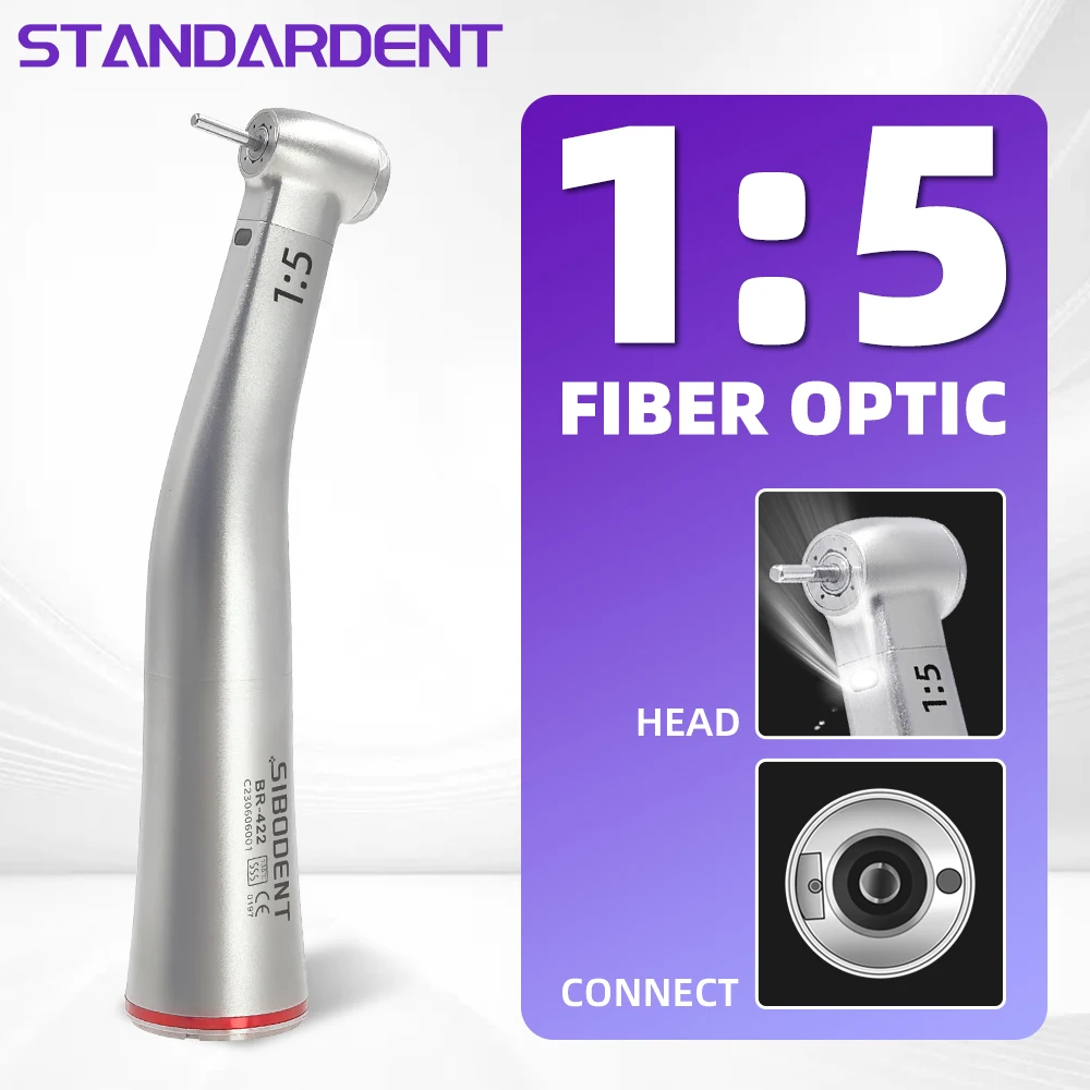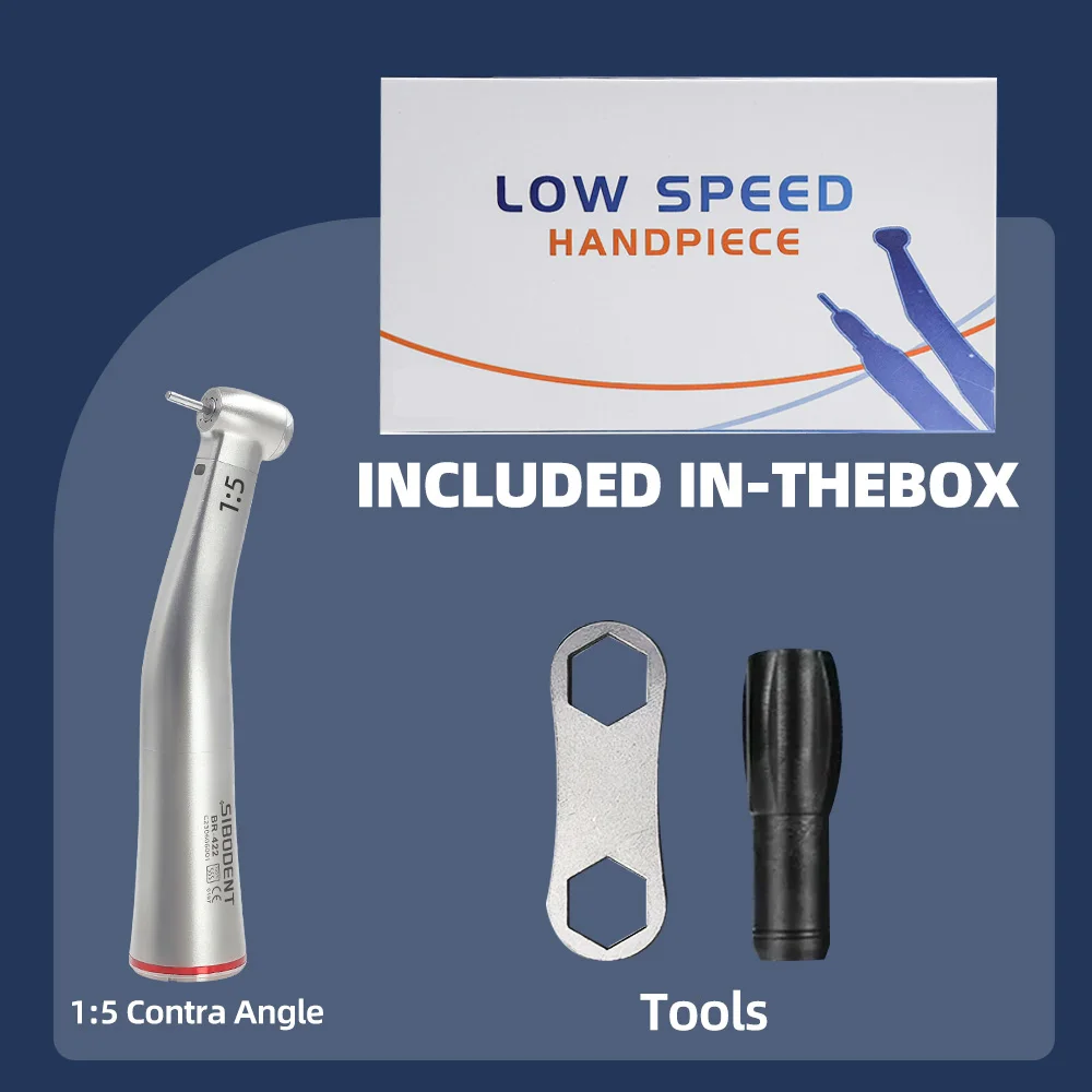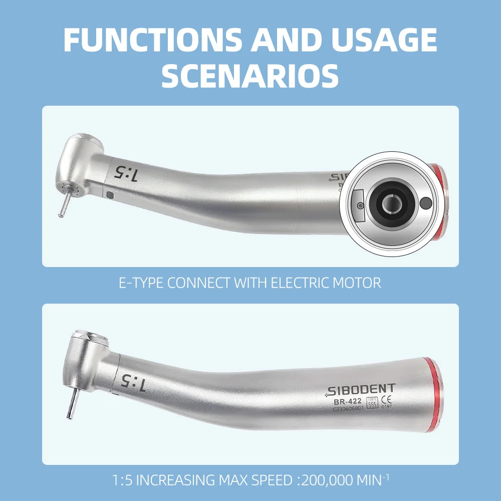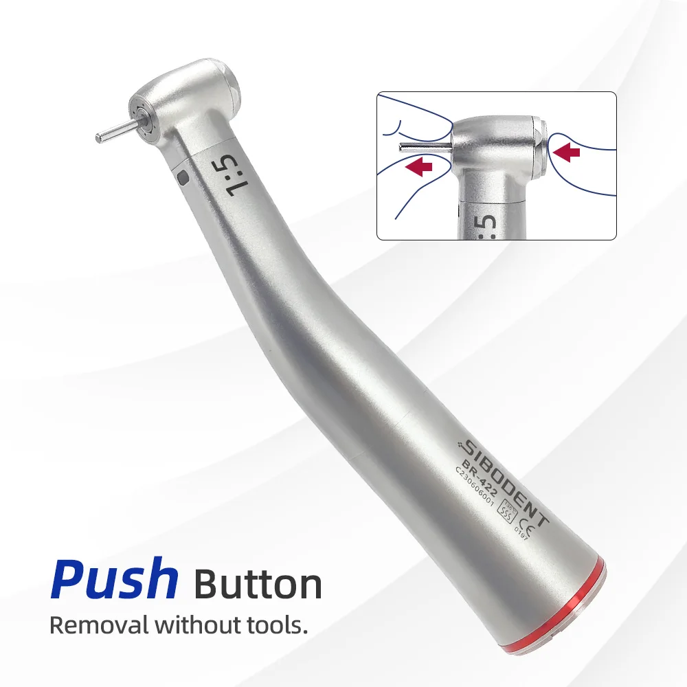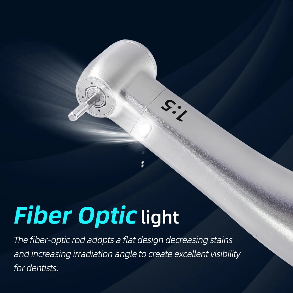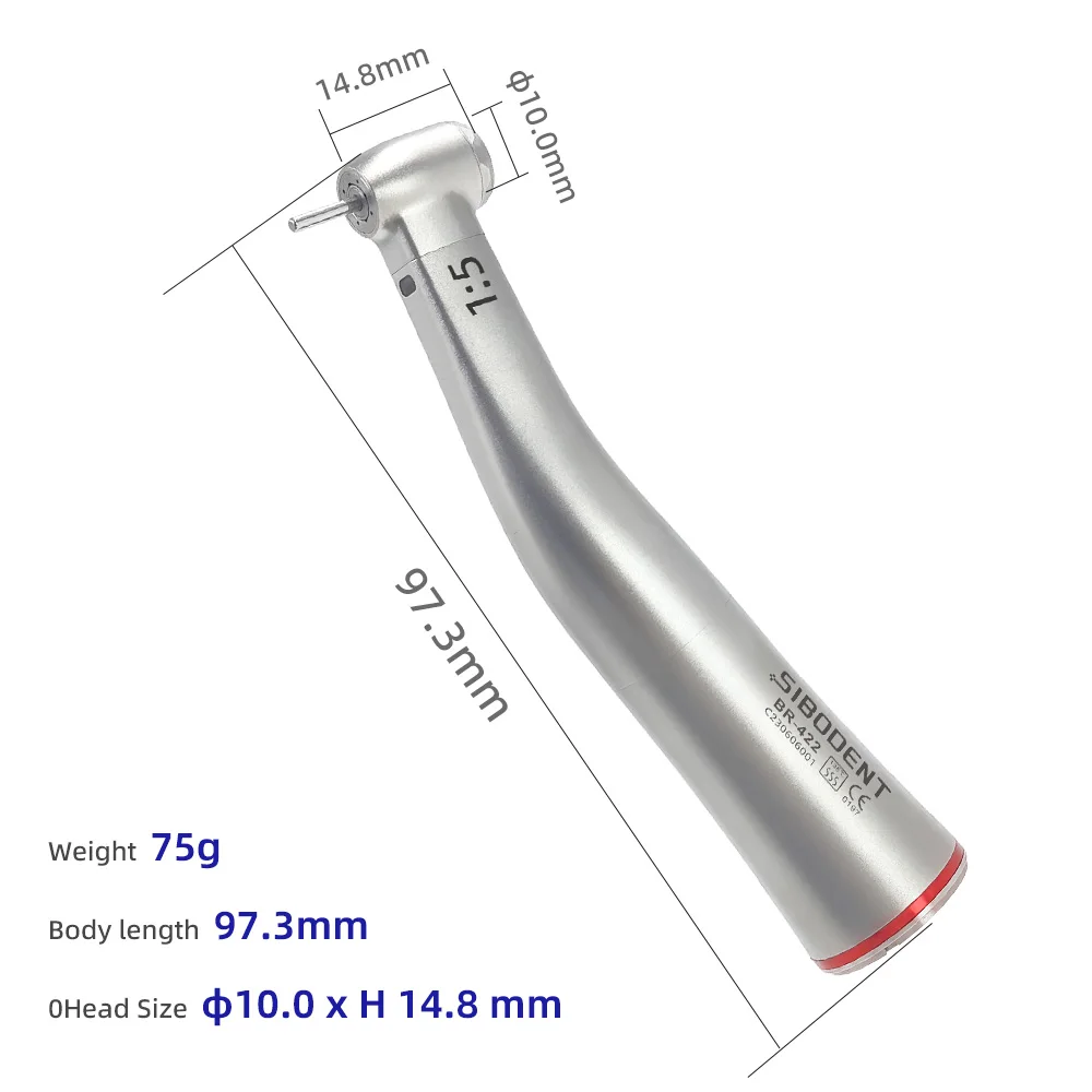 X95L Dental Low Speed 1:5 Contal Angle Increase Handpiece LED Fiber Optic Push Button Inner Water Spray Handpiece